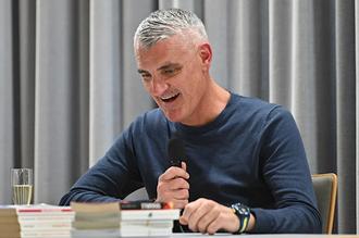 Hier beendet Tim Frühling grinsend seine Lesung „aus ermittlungstechnischen Gründen“, verrät aber so viel: Nach der Aufklärung des Mordes bleiben noch 50 überraschende Seiten mit einem Cold Case übrig. „Sie bekommen also zwei Krimis zum Preis von einem“, strahlt Frühling und wird für den kurzweiligen Krimiabend mit begeistertem Beifall bedacht. Bereits in der Pause war der Signiertisch dicht umlagert, das änderte sich auch nach Leseschluss nicht. Auch der Wunsch nach Hörbuchversionen seiner regionalen Krimireihe wird laut - und die Vorstellung einer Verfilmung. Mit Witz, Charme und flüssiger Feder widmet der Autor wunschgemäß seine Bücher, darunter neben den fünf Krimis um Kommissar Daniel Rohde aus Bad Hersfeld auch einen Köln-Krimi und mehrere Wanderführer.