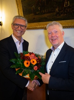Fraktionsvorsitzender Joachim Reimertshofer gratuliert Mario Sprengel zur Nominierung als Bürgermeisterkandidat