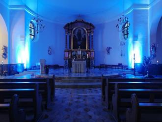 Für die passende Illumination des Innenraums der St.-Remigius-Kirche sorgten wieder einmal mehr die Gebrüder Ralf und Frank Born, die das Gotteshaus in die israelischen Landesfarben Weiß und Blau tauchten. Womit die Solidarität mit Israel nach den Terrorangriffen zum Ausdruck gebracht werden sollte.