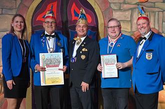 Bezirksvorsitzender Markus Braun von der Interessengemeinschaft Mittelrheinischer Karneval (IGMK) war trotz proppenvollen Terminkalenders gerne für zwei Sonderehrungen angereist. Der IGMK-Vizepräsident und Tanzsport-Beauftragte war voll des Lobes für die Arbeit des Vereins zur Pflege des fastnachtlichen Brauchtums, insbesondere auch im Nachwuchsbereich. Für 25 Jahre überaus aktive Mitgliedschaft zeichnete er Patrick Dietz aus, der aus dem Technikteam der KG Mörlau nicht wegzudenken ist. Den Verdienstorden in Gold mit Brillanten hängte er Ulrich Kasprzyk um für 51 Jahre aktives Wirken im Verein. KG-Vorsitzende Jessica Hadelko schilderte die Verdienste, die zur besonderen Ehrung des Urgesteins „Uli, die Legende“ führten. „Ob groß oder klein, Dich kennt jeder im Verein. Vielen Dank, dass dir die Tradition der Mörlauer-Fastnacht so am Herzen liegt.“