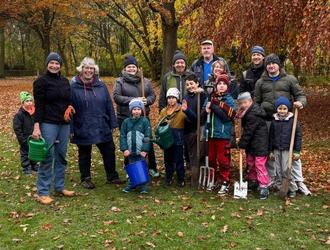 Am Samstag, den 08.11.2025 haben die Löschtiger Ober-Mörlen gemeinsam mit den Gartenfreunden/Dorfforum und der Mitarbeiterin der Umweltverwaltung der Gemeinde Blumenzwiebeln im Park gesetzt.