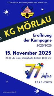 Morgen Abend, beginnt für uns die neue närrische Kampagne 2025/26. Ab 20 Uhr eröffnet die Fastnacht den Abend mit ihrer Wiedererweckung. Im Mittelpunkt des Abends steht natürlich die Inthronisation unseres Mörlauer Prinzenpaars. Außerdem werden verschiedene Tänze, Darbietungen und Ehrungen für besondere Leistungen und langjährige Mitgliedschaft geboten, für gute Musik sorgt DJ Rudi. Wir freuen uns auf eine fröhliche Narrenschar und einen schönen Abend!