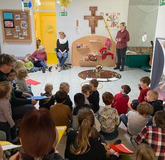 In einer kleinen Andacht, haben alle Kinder und Erzieherinnen der Einrichtung, Kerstin Jakobi herzlich begrüßt.