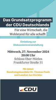 Die CDU Ober-Mörlen lädt daher alle interessierten Mitbürger herzlich zu dieser Diskussionsveranstaltung ein.