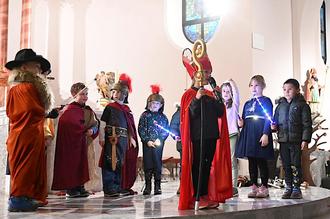 Begonnen hatte das Martinsfest der katholischen Pfarrei mit einer Andacht und Pfarrer Tobias Roßbach in der Pfarrkirche St. Remigius, wo die Vorschulkinder der katholischen Kita beherzt die Geschichte vom Mantelteilen spielten – und zeigten, wie Martin damals dank seines großen Herzens Licht ins Dunkel brachte. Die Texte und das Lied „Lichterkinder“ wird noch lange in herzerwärmender Erinnerung bleiben. Erst nach seiner Begegnung mit dem Bettler hatte sich der römische Soldat Martin damals taufen lassen, war Bischof und post mortem heiliggesprochen worden.