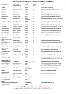 Aktuelles Telefonverzeichnis Gemeindeverwaltung Ober-Mörlen