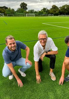 Bürgermeisterkandidat Mario Sprengel und Sebastian Schaller beim Besuch vom Kunstrasenplatz in Friedberg-Fauerbach und Austausch mit den dortigen Verantwortlichen
