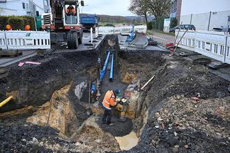 Bestens vertraut mit den Örtlichkeiten zeigen sich Bauleiter Florian Michel und Polier Wolfgang Bartsch von der Tiefbaufirma Reuscher aus Rennerod. Die Zusammenarbeit vor Ort sei hervorragend. „Das gute Miteinander ist das A und O“, unterstreicht auch der Planer. Dass man sogar mitten in der Nacht gemeinsame Sache mache, sei keine Selbstverständlichkeit. Mitten in der Nacht? „Eigentlich waren es zwei Nächte“, schmunzeln die Beteiligten, und Bürgermeister Mario Sprengel fügt augenzwinkernd hinzu: „Hier werden Millionen verbuddelt und niemand merkt’s“.