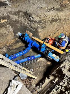 zweiter Nachteinsatz zum Anschluss der neuen Hauptwasserleitung am Hochbehälter