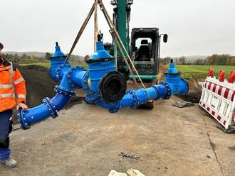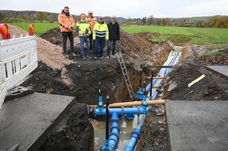 Tatsächlich hatten sich mitten in der Nacht auf den 8. sowie auf den 12. November vier Tiefbauer mit Wassermeister Draheim und dessen Kollegen Stefan Eichenauer von der kommunalen Wasserversorgung am neuralgischen Knotenpunkt zur „Herz-OP“ beziehungsweise „Umbindung“ getroffen, um alle Rohre derart umzustecken und anzukoppeln, dass das Lebenselixier Trinkwasser nun durch das neue und nicht mehr durch das alte System fließt. Und warum hat niemand etwas mitgekriegt? „Damit es zu keinerlei Versorgungsausfällen kommt, haben wir vorher eine Notversorgung zwischen Fernwasserleitung der OVAG und dem Ortsnetz hergestellt“, verrät der Wassermeister. „Gut gemacht“, findet auch der Bürgermeister.