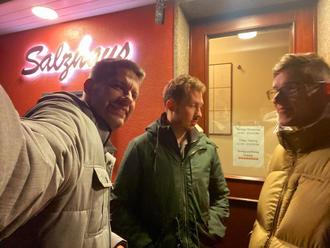 Lockere Runde nach dem Spiel, auch wenn bei einigen die Klatsche wehtut. Alex, Arne und Felix