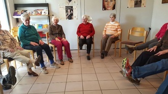 Nach Kaffee und Kuchen bringt Anette die Gruppe mit Musik und ausgewählten Übungen richtig in Schwung. Sie unterstützt damit die Gangsicherheit, stärkt die Muskulatur und den Gleichgewichtssinn und betreibt damit eine sinnvolle Sturzprophylaxe.