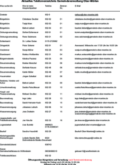 Aktuelles Telefonverzeichnis Gemeindeverwaltung Ober-Mörlen