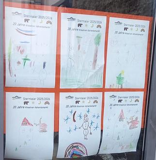 Anlässlich des 20. Kreativen Adventsmarkts malten die Sterntaler Bilder die noch bis Januar 2026 im Schlosshof zu bewundern sind.