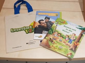 Das Lesestart-Set besteht aus einer kleinen Stofftasche, einem altersgerechten Buch für die Kinder und Informationsmaterial für Eltern mit wertvollen Alltagstipps zum Vorlesen und Erzählen.