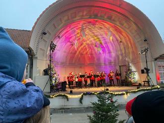 Nach dem fulminanten Konzert am 2. Advent stimmten die Roten Husaren diesmal unter freiem Himmel am vergangenen Adventssonntag auf dem Christkindlmarkt in Bad Nauheim die klassischen Weihnachtslieder an. Lieder wie „Kling, Glöckchen, Klingelingeling“, „Alle Jahre wieder“ oder auch „Oh du fröhliche“ luden die Besucher zum Mitsingen und idealerweise auch zum kurzfristigen Verweilen vor den Bühnen des wie immer gut besuchten, regionalen Weihnachtsmarktes ein.