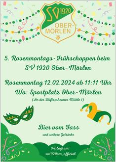 Am kommenden Montag ist es wieder soweit. Der SV 1920 Ober-Mörlen öffnet seine Nachspielnarrhalla zum traditionellen Frühschoppen. Pünktlich um 11.11 ist jeder, der es mit der närrischen Zeit hält, eingeladen, ein paar Stunden in ausgelassener Runde beim SVO zu verbringen. Also Ihr Jecken, ab ins Köstum und auf in die Mühlwiesen. Für feste und flüssige Nahrung wird wie immer bestens gesorgt sein. Und immer dran denken, wer nicht da war, der war nicht dabei.