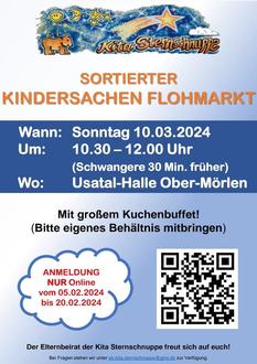 Am Sonntag, den 10.03.2024 findet zum wiederholten Male der sortierte Kindersachen Flohmarkt der Kita Sternschnuppe statt. Wir freuen uns, dass der Flohmarkt jedes Jahr so viele Interessenten anzieht. Auch in diesem Jahr, bietet der Flohmarkt wieder viele sortierte Klamotten für den Frühling und Sommer. Zudem gibt es eine große Auswahl an Spielsachen, Büchern und vielem mehr. Vorbeischauen lohnt sich!