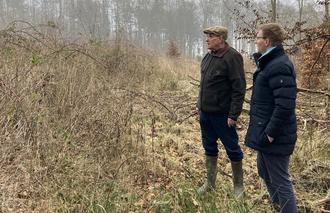 "Das tat, abgesehen vom finanziellen Schaden, schon sehr weh, wie Sturmschäden und lange Trockenheit dem Wald zugesetzt haben aber vor allem aber der Borkenkäfer in den letzten Jahren z.B. gesunde 60- bis 80-jährige Fichtenbestände vernichtet hat", erklärt Gerd-Christian von Schäffer, privater Waldbesitzer in Langenhain-Ziegenberg, dem Ortsteil von Ober-Mörlen dem CDU-Bundestagskandidaten Dr. Thomas Pauls bei seinem Besuch in der vergangenen Woche. Rund 20 Hektar groß sei das Schadensgebiet des Forstbetriebs, das es nun gelte Stück für Stück wieder aufzuforsten. Zusammen mit der Räumung der Flächen eine weitere Mammutaufgabe, die seinen Betrieb auch finanziell an Grenzen führe. Sicherlich gebe es staatliche Zuschüsse für die Maßnahmen, die jedoch nur mit einem immensen bürokratischen Aufwand und zum Teil unverständlichen Vorgaben von Bund und EU fließen. Paradox sei es, wenn neue Vorschriften Baumsorten, die nachweislich resistent gegen Trockenheit und Hitze und sich vielerorts bewährt hätten, plötzlich wieder, weil keine heimische Baumart, aus der Förderung gestrichen werden, schüttelt von Schäffer bei diesen Ausführungen ungläubig den Kopf. Am liebsten wäre es ihm allerdings gewesen, wenn die Natur sich auf den Schadens-Flächen selbst wieder regeneriert hätte. Leider sei das nicht überall gelungen. An Beispielen zeigte der Forstwirt seinem Gast eine mit Dornen und Sträuchern überwachsene 3,5 ha große Fläche, wo der Wald nur durch eine intensive Bearbeitung wiederhergestellt werden kann (s. Bild). An anderer Stelle wurden im letzten Jahr mit Hilfe von Schülern der Waldorfschule Bad Nauheim ca. 400 neue Laubholzbäume gesetzt. Neben dem wirtschaftlichen Aspekt hat Gerd-Christian von Schäffer kein Problem damit, dass sein Wald auch von Spaziergängern, Radfahrern und Reitern zur Naherholung genutzt wird, solange sie sich ordentlich auf den Wegen aufhalten. Dr. Pauls bedankte sich für die vielseitigen Informationen und versprach, sich mit vollem Einsatz für den Bürokratieabbau einzusetzen. "Beim Thema Bürokratie ist sich jeder mit dem ich spreche einig: Wir sind an einem Wendepunkt und müssen den Menschen und Unternehmen wieder mehr Luft zum Atmen geben," so Dr. Thomas Pauls abschließend.