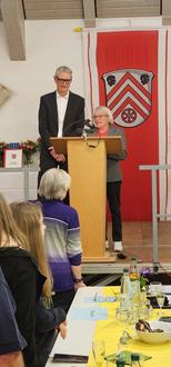 Der traditionelle Ehrenamtspreis der Gemeinde wurde diesmal geteilt und unter großem Applaus an Kai Schraub und Andre Frey übergeben. Auch deren jahrelanges Engagement in den Ober-Mörler Vereinen brachte Joachim Reimertshofer in launigen Worten den Gästen in Erinnerung.