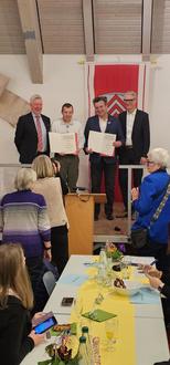 Die dazugehörige Urkunde und ein Strauß roter Blumen rundeten die Ehrung ab.