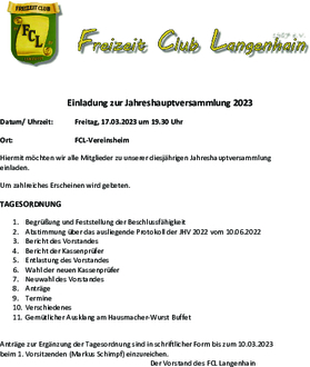 Einladung zur Jahreshauptversammlung 2023