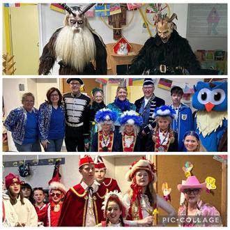 Den Auftakt machte Weiberfastnacht mit dem Besuch der Wintersteingeister. Mit großer Begeisterung durften die Kinder die beeindruckenden Masken aus nächster Nähe betrachten, selbst anprobieren und die kunstvollen Fellkostüme bewundern - ein ganz besonderes Erlebnis.
