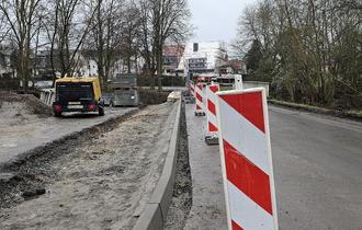 Das Brückengeländer auf dieser Seite wird nach außen verlegt, sodass genügend Gehwegbreite entsteht.