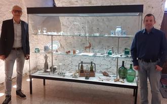 Schon zu früherer Zeit gab es in Ober-Mörlen Wirtshäuser und Schenken. Zu Beginn des letzten Jahrhundert bereits nachweislich 17 und nach dem zweiten Weltkrieg 39 Gaststätten. Eines dieser vielen Gasthäuser ist der „Goldene Hirsch“ in der Frankfurter Straße 14. Als ältester Schankhausbetrieb am Platz geht dessen Gründung auf das Jahr 1801 zurück. Aufgrund dieser langen Geschichte und Tradition des Hauses hat Kai Schraub eine Ausstellung in der Schlosskellervitrine eingerichtet, die von Bürgermeister Mario Sprengel eröffnet wurde und zu den Öffnungszeiten der Gemeindeverwaltung, hinterer Schlosshofeingang, eingesehen werden kann. Schon zum Neujahresempfang der Gemeinde im Januar in Langenhain wurde das Gasthaus mit zahlreichen alten Fotos und geschichtlich relevaten Ereignissen von Schraub und dessen Tochter den Gästen digital präsentiert. Der gleiche Vortrag wird abermals am Mittwoch, den 18. November um 14.00 Uhr zum Seniorennachmittag im Bonifatiussaal stattfinden. Bis dahin können interessierte Besucherinnen und Besucher einen Blick in die Vitrine werfen und sich ein Bild von Gegenständen und Utensilien aus der 225jährigen Zeitspanne der Existenz des Wirtshauses machen. Es sind Gastronomieartikel aus zwei Jahrhunderten arrangiert und ein Rückblick zur Kegelbahn und urigem Kneipenbrauchtum einzusehen.