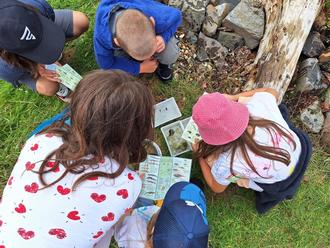 Zwischendurch und gegen Ende hatten die Kinder Zeit, das schöne Gelände zu erkunden. Dabei entdeckten sie noch die Ringelnatter im großen Steinhaufen und freuten sich über den Barfußpfad. Glücklich und ein wenig nass konnten sie von ihren Eltern wieder in Empfang genommen werden.