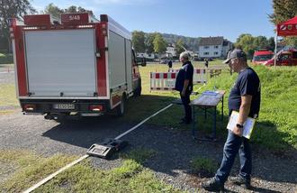 Anschließend fuhr man gesammelt mit den Fahrzeugen ins alte Schwimmbad in Ortenberg, wo schon ganz früh am Morgen der Übungsparcours von den beiden Kameraden Stefan Künzl und Axel Bechtoldt ausgemessen und aufgebaut worden war. Die Startreihenfolge der Fahrzeuge und Einsatzfahrer wurde vorher definiert, musste der Übungsparcours ja für Fahrzeuge bis zu einem Gesamtgewicht bis 7,5 t passen, als auch für Großfahrzeuge über 7,5 t Gesamtgewicht (die beiden Spurgassen und die Einparklücke mussten jeweils in der Breite und Länge angepasst werden). Gestartet wurde in der Gruppe A mit kleinen TSF über TSF-W-Fahrzeuge bis hin zur Gruppe B mit den Lkw aus dem gesamten Stadtgebiet.