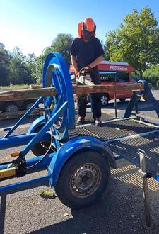 Sobald der Stamm unter Spannung steht, können die Teilnehmer gefahrlos ihre Schnitttechniken trainieren. Nach dem Durchtrennen des Stammes wird er von hinten weiter vorgeschoben, sodass direkt der nächste Übungsschnitt erfolgen kann. So bietet der Baumbiege-Simulator die Möglichkeit, realitätsnahe Situationen zu simulieren und sich sicher auf den Ernstfall vorzubereiten.