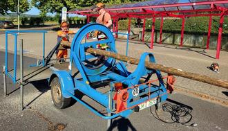 Sicher arbeiten nach Windbruch lautet die Devise. Verkeilte, verspannte oder ungleichmäßig im Gelände liegende Bäume stellen eine besondere Gefahr dar, da sie sich beim Sägen anders verhalten als spannungsfreie Bäume. Die immense Kraft, die beim Bruch freigesetzt wird, kann Personen in der Umgebung schwer verletzen. Selbst erfahrene Forst-Fachkräfte können oft nur schwer die Spannungsverhältnisse von umgestürzten Bäumen richtig einschätzen. Mit dem Baumbiege-Simulator BabiSi wurde ein Schulungsgerät entwickelt, das genau diese gefährlichen Situationen realistisch simuliert. Es ermöglicht den Teilnehmern, das Zersägen unter Spannung stehender Baumstämme gefahrlos zu üben und wertvolle Erfahrung zu sammeln. Dieses Training vermittelt die notwendige Sicherheit für den Ernstfall, sodass Unfälle bei der praktischen Arbeit künftig hoffentlich vermieden werden können.