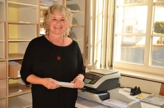 In unserer Serie „Wir für Sie im Rathaus“ wird heute Birgitt Wäß vom Empfang vorgestellt. Die gelernte Arzthelferin, die lange Jahre beim Kreiswehrersatzamt in Gelnhausen beschäftigt war, stieß 2013 zum Team der Stadtverwaltung und arbeitet seit dem vergangenen Jahr im Empfang. Hier ist sie dienstags und donnerstags längst nicht nur damit beschäftigt, Besuchern den Weg zu jenen städtischen Ansprechpartnern zu weisen, bei denen sie mit ihren Anliegen an der richtigen Adresse sind, oder Anrufer in die einzelnen Abteilungen durchzustellen. Auch der gesamte Post-Ausgang ist ihre Aufgabe, ebenso das Bestücken des städtischen Aushangkastens. An gesetzlichen Feiertagen und besonderen Gedenktagen kümmert sie sich um die angeordnete Beflaggung. Außerdem sorgt sie dafür, dass touristische Prospekte und anderes auszulegende Schrifttum stets verfügbar und auf dem aktuellen Stand sind. Sie verkauft Hefte und Bücher mit lokalen Bezügen, und wer Bio-Abfallbeutel und Müllsäcke kaufen will, ist bei ihr ebenso an der richtigen Adresse wie alle, die einen Müllkalender benötigen oder eine Beglaubigung brauchen. In ihrer Freizeit gilt Birgitt Wäß’ große Leidenschaft der Hühnerhaltung. Außerdem betreibt sie Qi-Gong und gibt sogar Kurse darin. Birgitt Wäß ist per Mail unter der Adresse zentrale@ortenberg.net zu erreichen.