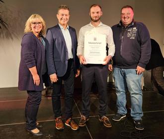 Es ist noch kein Meister vom Himmel gefallen, aber mit Fleiß, Ausdauer und Engagement haben sich schon viele Handwerker ihren Meistertitel ehrlich erarbeitet. Mit Tobias Wirth vom städtischen Bauhof hat die Stadt Ortenberg nun ebenfalls einen frisch gebackenen Meister in ihren Reihen. Der ausgebildete Garten- und Landschaftsbauer, stellvertretende Bauhofleiter und Teamleiter des Grün-Teams des Bauhofes darf sich nach erfolgreichem berufsbegleitenden Besuch der Meisterschule jetzt Gärtnermeister in der Fachrichtung Garten- und Landschaftsbau nennen. Im Rahmen seiner knapp einjährigen Qualifizierung an der Eugen-Kaiser-Schule in Hanau erwarb Tobias Wirth außerdem den Abschluss „Bachelor Professional in Agrarwissenschaft“ sowie seinen Ausbilderschein. Auf dem Lehrplan standen neben fachspezifischen Inhalten auch betriebswirtschaftliche Themen und der Bereich Mitarbeiterführung. Als Wirth nun voller Stolz seinen Meisterbrief entgegennehmen konnte, waren auch Bürgermeister Markus Bäckel, Bauhofleiter Manuel Altvatter sowie die stellvertretende Bauhofleiterin Nicole Mohn anwesend und gratulierten ihm herzlich zu seinem Erfolg.