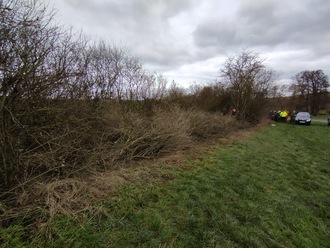Feldhecke „Mengelsfeld“, teilweise auf den Stock gesetzt (Foto: NABU Petersberg)