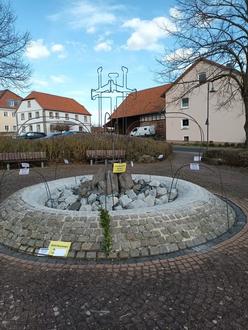 Der wichtigste Punkt der Tagesordnung aber war der geplante Osterbrunnen. Wie auf den Fotos zu sehen ist, erhebt sich der Osterbrunnen bereits mit seinem Stahlgerüst wie eine majestätische Krone über dem Dorfbrunnen, die von einem dreidimensionalen Kreuz überragt wird. Dank allen fleißigen Helfern, Monteuren und Stahlarbeitern, denn damit habt Ihr Marbach wirklich noch schöner gemacht!