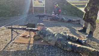 Eine neue Erfahrung für die Teilnehmer war das Schießen mit der Fernbedienbaren Leichten Waffenstation (FLW) im Simulator. Die Fertigkeiten in der Versorgung von Verwundeten wurde bei einem Waldarbeiterunfall mit Kettensäge abgeprüft. Im Bereich der zivil-militärischen Zusammenarbeit galt es schnellstmöglich Sandsäcke zu befüllen, zu verschließen und auf einer Palette zu stapeln.