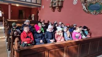 Die Schülerinnen und Schüler der dritten Klassen der Johannes-Hack-Schule und der Rauschenbergschule mit ihren Klassenlehrerinnen Frau Raschke, Frau Blank und Frau Otto waren der Einladung des Heimatvereins Petersberg gefolgt, um die Liobakirche zu besichtigen. Felix Gaul informierte über die Kirche und das Leben der Heiligen Lioba.