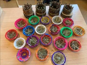 Bald kommt der Osterhase zu den Kindern der Kita Kolibri. Damit er weiß, wo er seine Osterüberraschung hinlegen kann, haben die Kinder sich ein Osternest gebastelt.