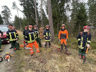 In diesem speziellen Themengebiet wurden am Wochenende vom 13. bis 15. April insgesamt 24 Kameraden aus allen 6 Ortsteilen erfolgreich ausgebildet. Unter Leitung eines Ausbilderteams des Landkreises Fulda wurden im Feuerwehrhaus Marbach nicht nur die einschlägigen Unfallverhütungsvorschriften gelehrt, es wurden auch Wartung und Pflege sowie der sichere Umgang mit der Motorkettensäge geschult. Dies diente der Vorbereitung des großen Praxistages am Samstag im Marbacher Forst. Dort wurde dann das erworbene Wissen in die Tat umgesetzt. Bäume wurden unter Anleitung der Ausbilder fachgerecht gefällt und verschiedene Schneidetechniken am praktischen Beispiel präsentiert. Dies erfolgte immer wieder unter Hinweis auf mögliche Gefährdungen für die Einsatzkräfte und wie diese bestmöglich vermieden werden können.