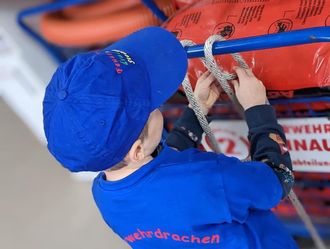 Nach zwei vorangegangenen Übungsterminen konnten die Feuerwehrdrachen ihr Können in verschiedenen Stationen unter Beweis stellen. Dort bewiesen sie den richtigen Umgang beim Anzünden eines Teelichtes, tätigten einen Notruf, benannten einzelne Geräte der Feuerwehr und machten verschiedene Knoten. Diese besonderen Herausforderungen meisterten die Kinder mit Bravour, sodass alle die Prüfung bestanden haben.