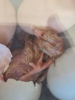 Eine weitere Woche danach hörten wir die Küken in den Eiern piepsen.