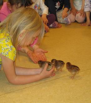 Bis Mittwoch vor Ostern blieben die Küken im Kindergarten. Einige Kuschelrunden mit den Kindern fanden selbstverständlich auch statt.