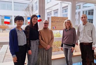 von links: Französischlehrerin My Hien Michel, Fachleiterin Sarah Herzig, Schulleiterin Anke Schüler sowie die beiden französischen Gast-Lehrkräfte Mechthild Hartner und Michael Noé