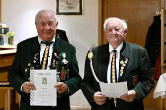 Der absolute Höhepunkt des Jahres war jedoch die Verleihung der 70-jährigen Ehrennadel des Deutschen Schützenbundes an Otmar Bug und Erwin Müller. Beide sind seit der Wiedergründung des Vereins im Jahr 1954 aktiv im Verein tätig, hatten mehrfach Vorstandspositionen und andere Ehrenämter inne und wurden in einer, aufgrund ihres herausragenden Werdegangs im Verein, langen und emotionalen Laudatio geehrt.