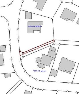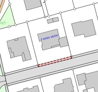 Familie Müller hat für den markierten Teil des Gehwegs in jedem Jahr den Winterdienst durchzuführen.