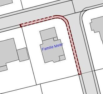 Familie Meier besitzt ein Eckgrundstück, das an zwei Straßen angrenzt. Beide Straßen haben jeweils beidseitige Gehwege.