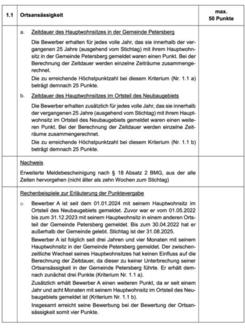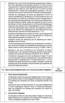 Bei den Vergabekriterien zur Bewertung der Bewerbungen wird zwischen Ortsbezugs- und Sozialkriterien unterschieden.