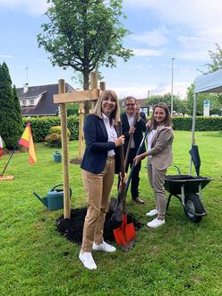 Pflanzten gemeinsam Bäume: die Bürgermeister Berta Fernandez, Arnaud Jacottin und Claudia Brandes.